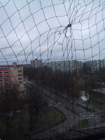 We worden al jaren geterroriseerd door een stel duiven, die maar niet door hebben dat wij hun aanwezigheid niet zo op prijs stellen. Zelfs het antiduivennet helpt niet goed. Af en toe komen ze gewoon door een opening gezeild en moeten dan door Frank ontzet worden, omdat ze er zelf niet meer uit komen. Gelukkig voorkomt het net wel dat ze hier willen nestelen.