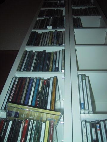 De oude cd-rekken hebben de keuring niet overleefd en staan nu op zolder. In hun plaats zijn twee witte Benno's van Ikea gekomen. We hebben nog wat ruimte over voor nieuwe cd's, maar volgens mij duurt het niet lang voordat we Benno nr. 3 moeten aanschaffen...