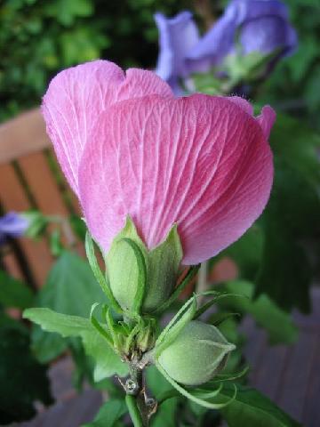Als het goed is, is dit een bloem van de hibiscus. Maar ik vind dit meer een 'vlinderstruik'. Niet zozeer omdat het vlinders lokt, maar omdat de bloemblaadjes zo vlinderachtig zijn.