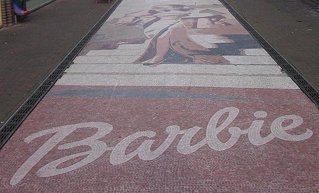 In het Drakennest ligt een vloermozaiek van Barbie. Erg leuk, in een winkelstraatje met alleen kinderwinkels: houten speelgoed, Oilily-spullen, Mexx en een spelletjeswinkel.