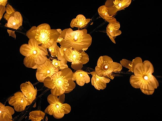 Tijdens de donkere dagen hadden we deze lampjes in bloemvorm op de tijdschakelaar gezet. Dus elke avond sprong er 'n bosje bloemen "aan". 'n Erg raar, maar wel erg mooi, gezicht.
