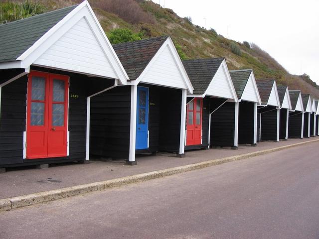 Zoals in veel badplaatsen heb je ook in Bournemouth huisjes die je in de zomer kunt huren. Met het weer toen wij er waren, zagen ze d'r 'n beetje droevig uit. Maar in de zomer zijn ze vast prachtig!