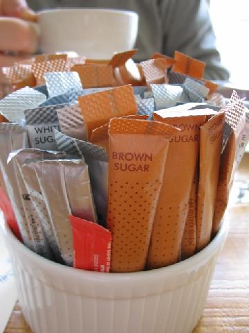 Huh? Dat heb ik nog nooit eerder gezien: staafjes met rietsuiker. En dat in gewone eet- en drinkgelegenheden, niet eens in de alto-hoek. OK, het was wel in Engeland :o)