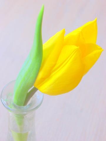 Regelmatig neem ik bloemen mee. Niet alleen voor Manon, maar ook omdat ik ze zelf zo mooi vind. Nu staan er tulpen op tafel. En omdat er eentje net niet meer in de vaas paste, staat'ie in 'n klein vaasje ernaast.