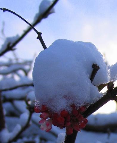 Net als vorig jaar in maart, is het nu ook weer flink winters. Gelukkig kan de winterjasmijn er wel tegen.