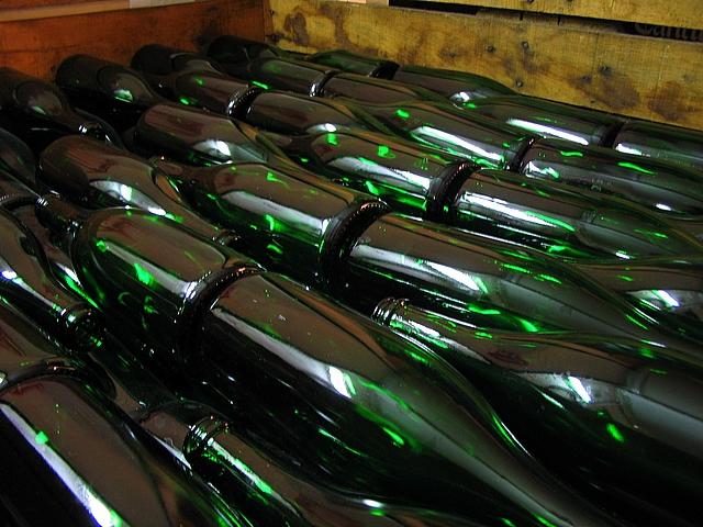 Volgens mij zijn deze bierflessen met liefde zo neergelegd in het krat. Zo niet, wat zal dat een herrie geven in de bierbrouwerij...