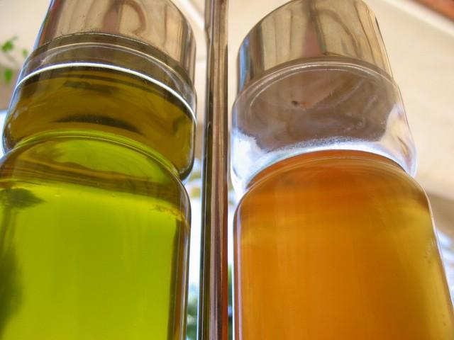 Een simpel olie-en-azijn-stelletje kan er al heel mooi uitzien met het juiste licht. Maar toen ik in de 'tuutjes' keek, zag ik wat dooie vliegjes zitten... Wel mooi, niet fris dus.