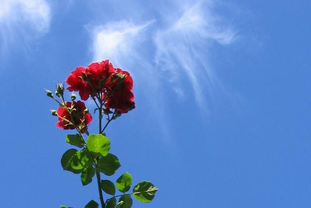 Dit is met recht een klimroos. Deze tros stak zeker een meter boven de pergola uit. Na het petweer van de afgelopen dagen is er helaas niets meer over van de bloemen.