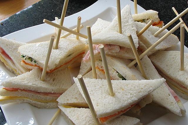 Het is toch altijd apart om mee te maken: een uitvaart is een droevige gebeurtenis, maar de lunch er na met familie is meestal een gezellige bedoening. Zeker met dit soort sandwiches. En mikado spelen met die dikke, korte prikkers lukt dus niet.