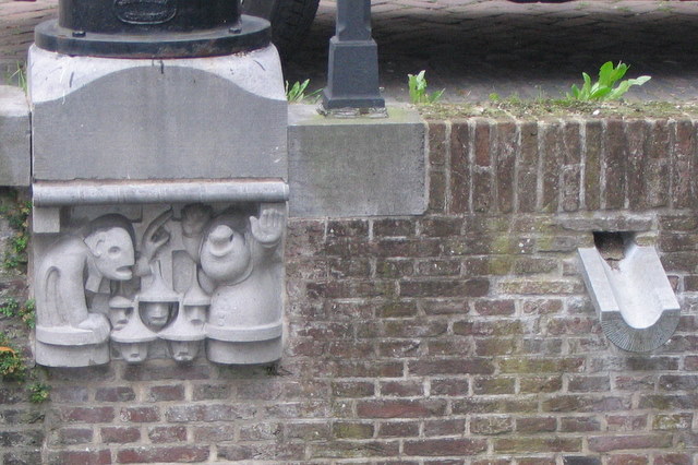 Die op de Nieuwegracht zijn nog niet zo oud, zoals deze verwijzing naar het Utrechtse kerkenkruis. En als je dan toch over de Nieuwegracht loopt, kijk dan ook eens of je de dierenarts kunt vinden die een nijlpaard in zijn bek kijkt.