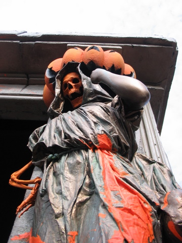 Op deze foto lijkt 't misschien wel 'n skelet in 'n vuilniszak, maar van dichtbij was'ie echt heel eng hoor!