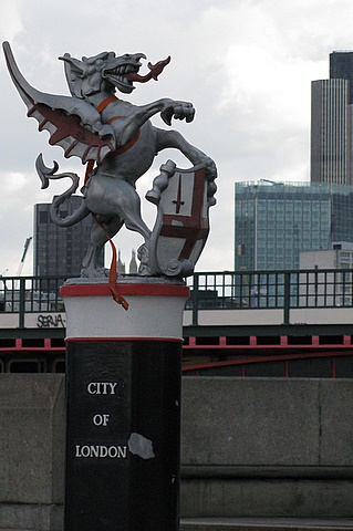 Als je in Londen ineens midden op de weg een draak op een meerpaal tegenkomt, dan weet je dat je het stadsdeel City of London hebt bereikt, het oudste en oorspronkelijkste stukje Londen.