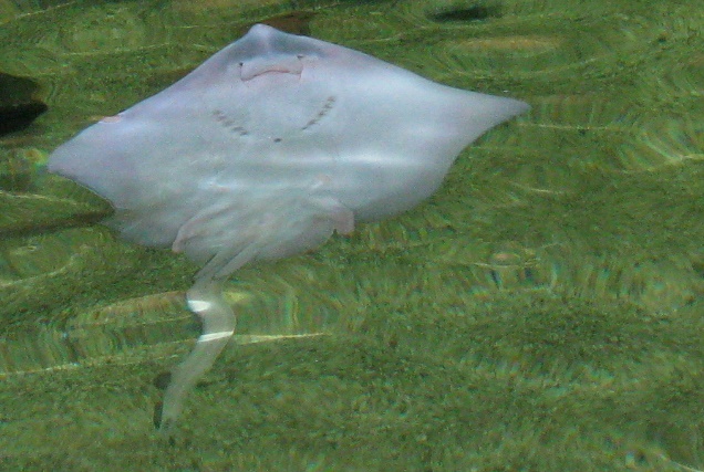 Roggen vind ik grappige vissen, met hun nieuwsgierige 'neusje'. Als je bij een bassin met roggen staat, komen ze altijd even kijken wat voor vlees er boven hun kuip hangt. Met hun Michael Jackson-neusje komen ze dan even boven water. Of ze komen ondersteboven voorbij zweven. Dat is een koddig gezicht. Die grote 'mond' en de twee kleine 'ogen' er vlak boven. Maar volgens mij zien ze zelf dan alleen de bodem, want hun ogen zitten bovenop.