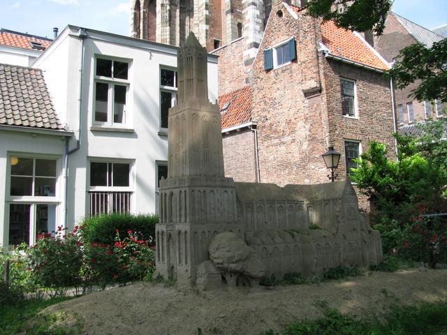 Wow, dat is even zandkunst! Aan het hek hing een A4-tje met 'Postkaarten bij VVV'. Toen ik een cadeautje afrekende bij de VVV-dame, vroeg ik hoe lang de Domkerk in zand daar al stond. Blijkt dat de sculptuur al vanaf augustus 2007 staat. Het lijkt wel cement.