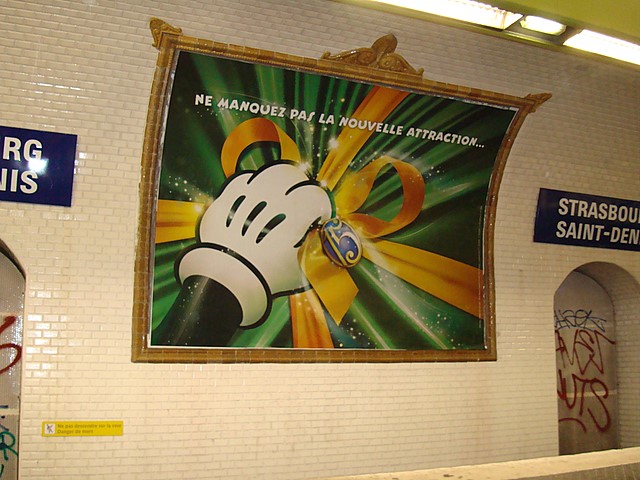 Ook in de metro-stations ontkom je niet aan de Disneyland-reclamed. Zoals deze voor 'n nieuwe attractie. Dat moet dan haast wel 'n echte "dark ride" zijn.