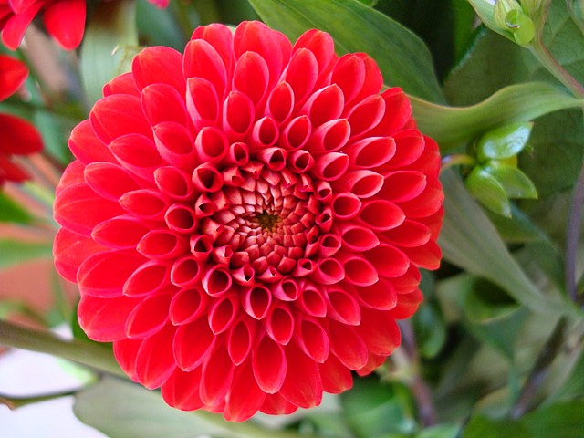 Ik had laatst 'n boeket gekocht met Gerbera's en deze dingen. Volgens Manon zij het Dahlia's. Geen idee of het waar is, maar op zich klinkt het wel mooi: Dahlia.