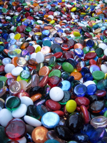 Het is alweer even geleden dat we in Half Moon Bay bij de Half to have it rondliepen en 'n kruiwagen vol met decoratieve glazen steentjes zagen. We hebben er niks gekocht, maar natuurlijk wel veel foto's gemaakt. Hollanders als we zijn.