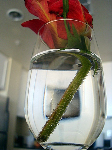 Laten we van dit weekend weer 'ns 'n klassiek Faust-foto-weekend maken, met close-up opnamen van objecten in de huiskamer. Zoals deze roos - ietsje ingekort omdat de steel geknakt was.