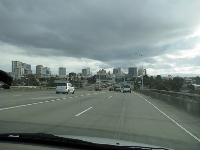 Oakland schijnt een van de mindere steden te zijn om in te wonen hier in de buurt. Maar van 'n afstand ziet het er toch wel uit als 'n bruisende metropool.