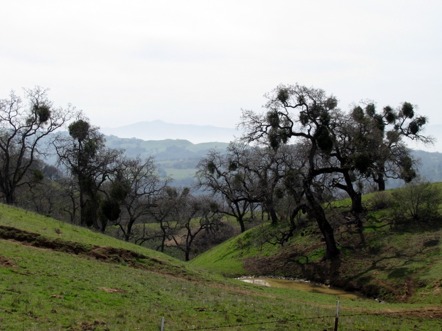 Als je richting Mount Hamilton rijdt, kom je bomen tegen met grote bollen maretak. Dat betekent dat er veel kalk in de bodem zit. En dat betekent een heleboel zoenen als je onder deze bomen door wandelt.
