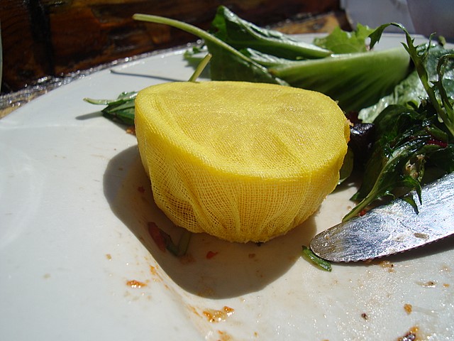 Dit had ik nog niet eerder gezien, een aangeklede citroen. Een halve dan. Is het tegen uitdroging of tegen insecten?