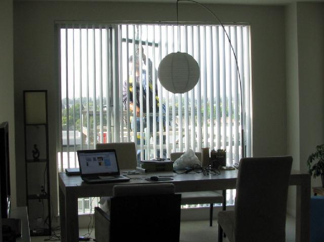 De ramen van ons appartementencomplex zijn weer schoon. Maar liefst een keer per jaar worden de onbereikbare ramen gezeemd door een bedrijf. De schuifpuien op het balkon moet ik helaas zelf doen.