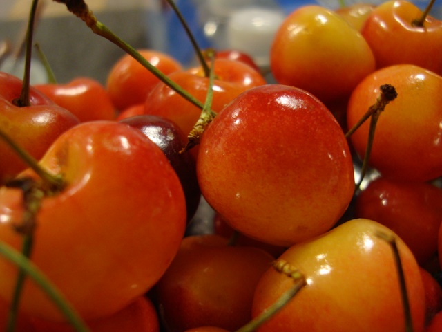 Dat je witte en blauwe druiven hebt, weet iedereen wel. Maar wist je ook dat er witte kersen zijn? Als je van dichtbij bekijkt, lijken het net appels. Maar zo smaken ze niet hoor!