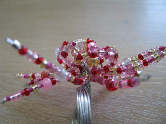 Op deze foto is de ring bijna af. Er moeten nog een paar sprieten naar binnen gebogen worden.