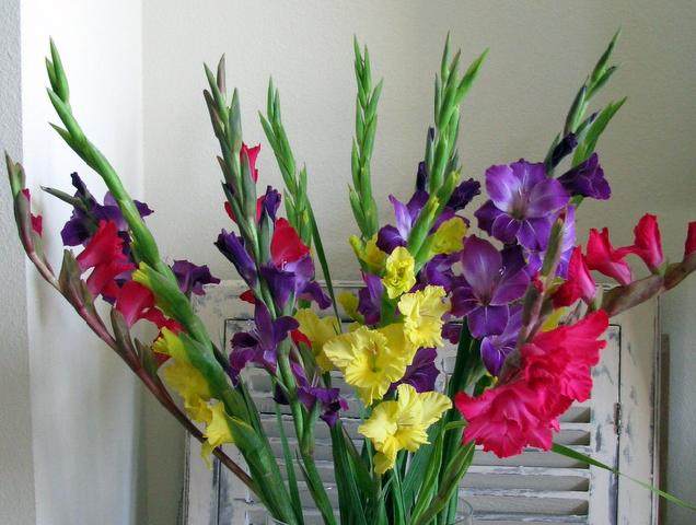 Wow, de supermarkt had gladiolen in de aanbieding: drie dollar voor vijf takken. We hebben dus direct drie bossen meegenomen. Beetje Amerikaanse kleurstelling, maar met een vertrouwd Utrechts gevoel.