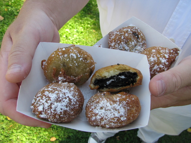 Apple fritters, funnel cake en gefrituurde groenten waren we al eens tegen gekomen op straatfestivals, maar nu hebben we iets nieuws aan ons lijstje toegevoegd: gefrituurde Oreo-koekjes.