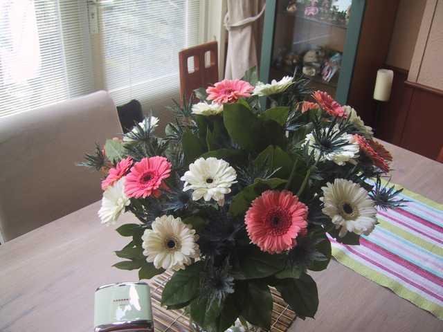 Mijn lief is gek op gerbera's. Deze bos is gesponsord door oma.