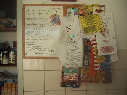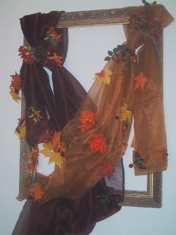 De lijst die op onze bruiloft als 'op-de-fotolijst' werd gebruikt, gebruiken we nu als raamwerk voor onze thuiskunst (ahum). Afgelopen voorjaar hingen er plastic grasmatjes met bloemetjes en duifjes in, en binnen nu en een paar dagen wordt de lijst weer omgetoverd tot kerstkaartenhouder.