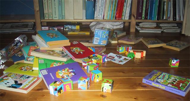 Als je je neefjes van bijna 3 en net 6 op bezoek krijgt, kun je er donder op zeggen dat het rommel wordt. Maar gelukkig mag dat bij ons, doen we zelf ook!