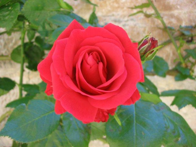 Een bloeiende roos is altijd fotogeniek. Deze roos bloeide in tegen de muur van het kasteeltje in Chateauneuf.