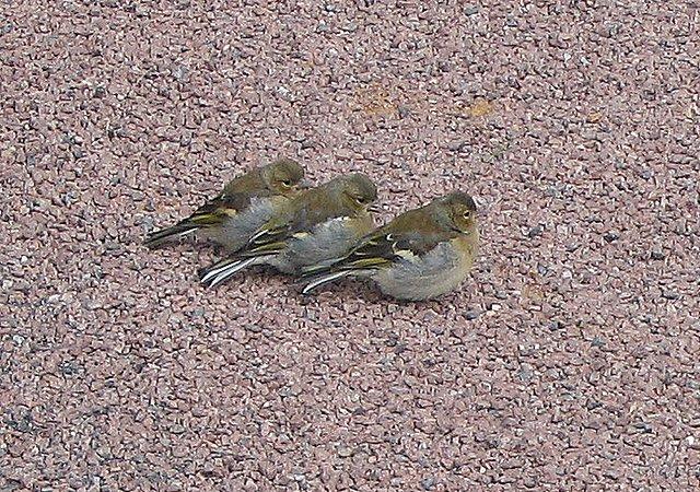 Drie jonge musjes waren een beetje suffig van het warme weer en nog niet helemaal gewend aan De Grote Gevaren van het Leven Buiten het Nest (lees: ze waren nog nergens bang voor).