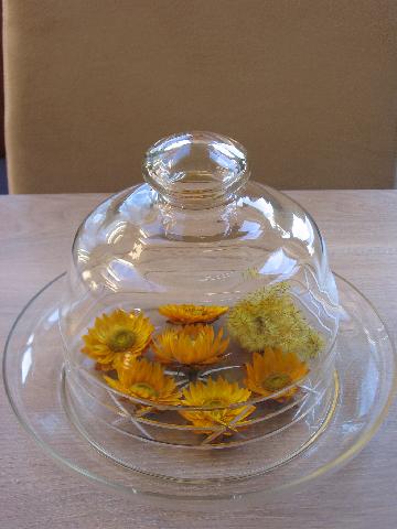 Deze bloemen en de kaasstolp van opoe kregen we mee van mijn mams. Toen ik de bloemen in de stolp legde, gebeurde er iets raars. De bloemen gingen na een dag of twee dicht, toen weer open en lieten hun zaadjes los. We zaten dus met een wolk zaadjespluis onder de stolp...