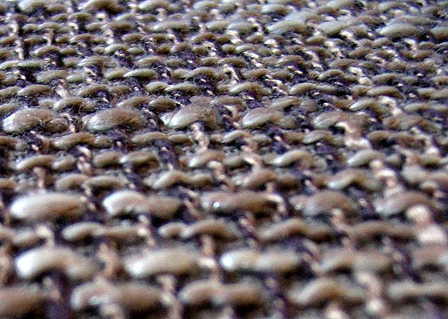 We hebben nu eindelijk ook ons blauwe tweezitsbankje in de woonkamer vervangen door iets dat beter past bij het "nieuwe" interieur. Het is 'n love seat geworden, dus zeg maar 'n anderhalfzittertje. De bekleding is de hele grove stof die je hier in close-up ziet.
