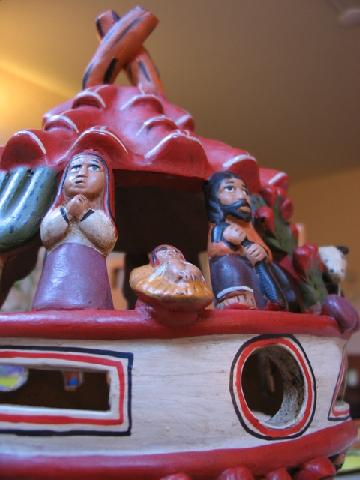 Van de lieve Sint gekregen: het heeft de vorm van een paasei, maar het is een aardewerken kerststalletje. Binnen in brand je een waxinelichtje of ander klein kaarsje. Pas op: het 'ei' wordt wel flink warm, dus blaas het vlammetje uit door de openingen heen.