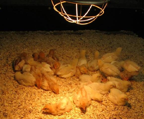 Een maand geleden zagen we deze kuikentjes lekker warm onder de lamp liggen. Inmiddels hebben ze het formaat 'krielkipjes' en groeien nog door.