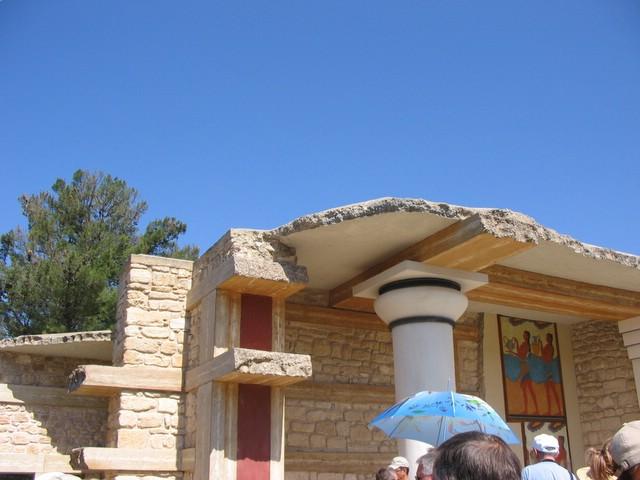 Frank moest er aan geloven: ik moest en zou naar Knossos. Twintig jaar geleden ben ik daar ook geweest en dat was erg indrukwekkend. Deze keer viel het een beetje tegen: het was ontzettend warm, de gids-met-paraplu was niet erg prettig (al wist ze veel over Knossos), er zaten vervelende mensen in onze groep en er zijn nu overal loopbruggen aangelegd. Op zich goed voor het behoud van de opgravingen, maar je raakt het gevoel een beetje kwijt...