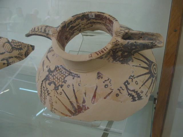 Zoals ik gisteren al vertelde zijn de spullen die op Knossos gevonden zijn in 'n museum terug te vinden. Dit is bijvoorbeeld 'n onderdeel van 'n kruik. Ook hier is wel wat restauratie aan gedaan, maar het is in elk geval geen volledig nabouwsel in gewapend beton. :-)