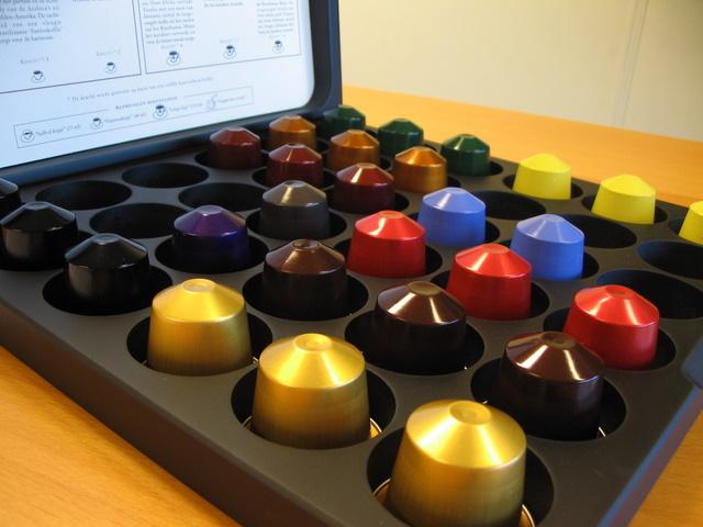 De Nespresso-cups zijn voor mij echt een toppunt van mooi industrueel ontwerp. Op zich zijn het eenvoudige, gekleurde alluminium bakjes. Maar de kleuren en de symmetrie zorgen dat ze er met 'n paar bij elkaar erg fascinerend uitzien. Bijna kunstig...