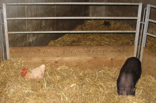 Op de kinderboerderij bij ons in de wijk, hadden ze tot vorig jaar ????n groot varken: Knorrie. Maar toen Knorrie het loodje legde, kregen ze daarvoor in de plaats drie hele kleine varkentjes. Nee... geen biggetjes, deze worden niet veel groter dan dit.