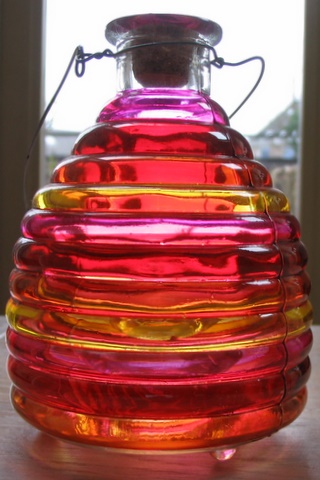 Deze wespenvanger kreeg ik vorig jaar van 'n vriendin. Niet dat we hier veel last van wespen hebben, maar het leek haar 'n heel mooi onderwerp voor me om foto's van te maken. Ik denk dat ze daar wel gelijk in heeft, maar dan moet 't wel eerst weer wat mooier weer worden! Want binnen kom ik niet veel verder dan dit...