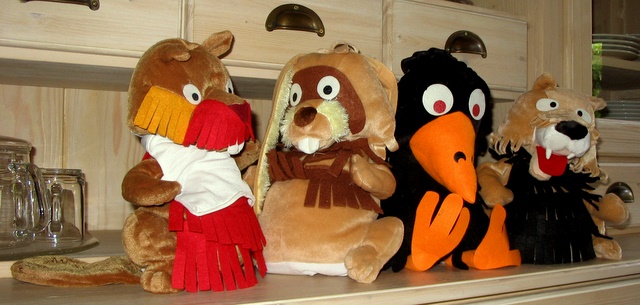 Leuke actie: ik sta bij de Albert Heijn, zie dat de handpoppen van de Fabeltjeskrant nu gewoon te koop zijn en weet dat een vriendin ze graag wil hebben voor haar zoontje. Ik bel haar direct even om te checken of ze de poppen inmiddels al heeft. Nee, nog niet en ja ze wil ze nog steeds. Dus ik laad de dozen met Meneer de Raaf, Bor de Wolf, Willem Bever en Zoef de Haas in mijn winkelwagen. Maar dan het besef: ik ben op de fiets, dus hoe neem ik de boodschappen + die dozen mee? Terugkomen met de auto ging me toch wat te ver.