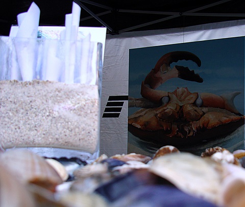 Tijdens de open-atelierdagen in Hattem (begin oktober) exposeerde Anneke Bagerman in haar tuin. Haar serie 'Stille reis' maakt ze samen met mijn vader: hij heeft spullen gejut op het strand van Terschelling, zij heeft ze verwerkt in haar schilderijen. Mijn pa heeft er gedichten bij gemaakt en declameerde op die dagen uit zijn complete oeuvre. Bezoekers mochten een rolletje uit de 'accubak' pakken. Daar stond dan een van zijn aforismen op.