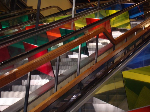 Waarschijnlijk is deze plek het meest gefotografeerd tijdens de Zoom.Experience. De roltrappen naast de ingang tot de fotobeurs trok veel bekijks. Dat is ook niet gek, de combinatie van de gekleurde platen op de roltrappen en de spiegels aan weerszijden geeft een kaleidoscopisch effect.