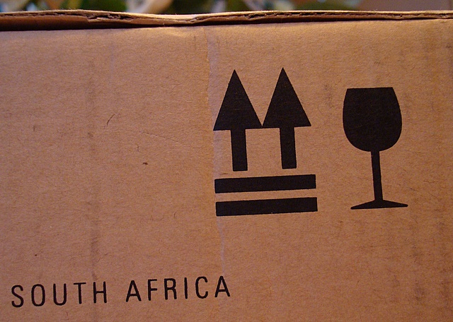 Het wijnglas geeft aan dat de inhoud breekbaar is, niet dat er wijn in de doos zit (wat er overigens wel in zit zat, in flessen, maar dat terzijde).
