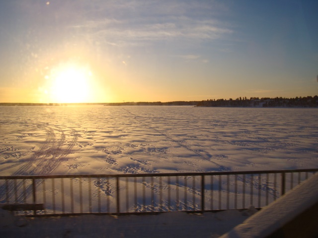 De zon hangt eind januari nog heel laag in Zweden. Dus dan heb je 's ochtends om 10 uur dit uitzicht, en 's middags om 3 uur weer. Niks mis mee, lijkt mij zo. Hoewel het dan wel erg lang donker is...