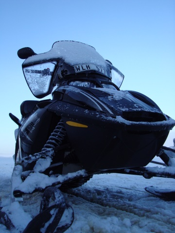 Zweden is 'n land met fantastische natuur... en met enorm natuurvervuilende apparaten. Zoals deze 550cc sneeuw-scooter. Hoewel het 'n beetje sukkelig is om twee uur lang met 25 van die dingen achter elkaar aan te "rijden" over 'n pad door 't besneewde veld, is het stiekem toch wel 'n erg fantastische belevenis.